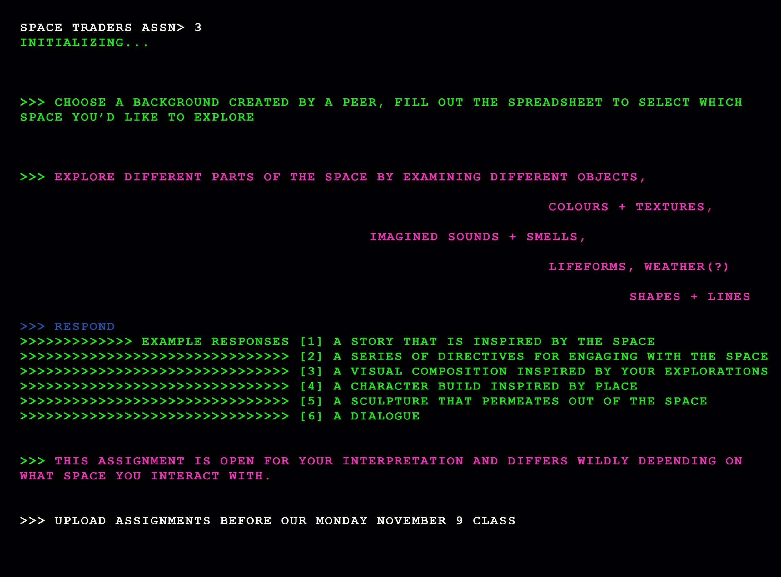 Students were assigned to bring to life a story of the secret life of a particular object or phenomenon through three periods or stages in time. The goal was insightful, critical and contextual understandings of the chosen subject and it's changing social, political, conceptual, cultural and/or environmental relationships in the world. The outcome was to be a 4 minute expressive video, animation, or performative presentation.